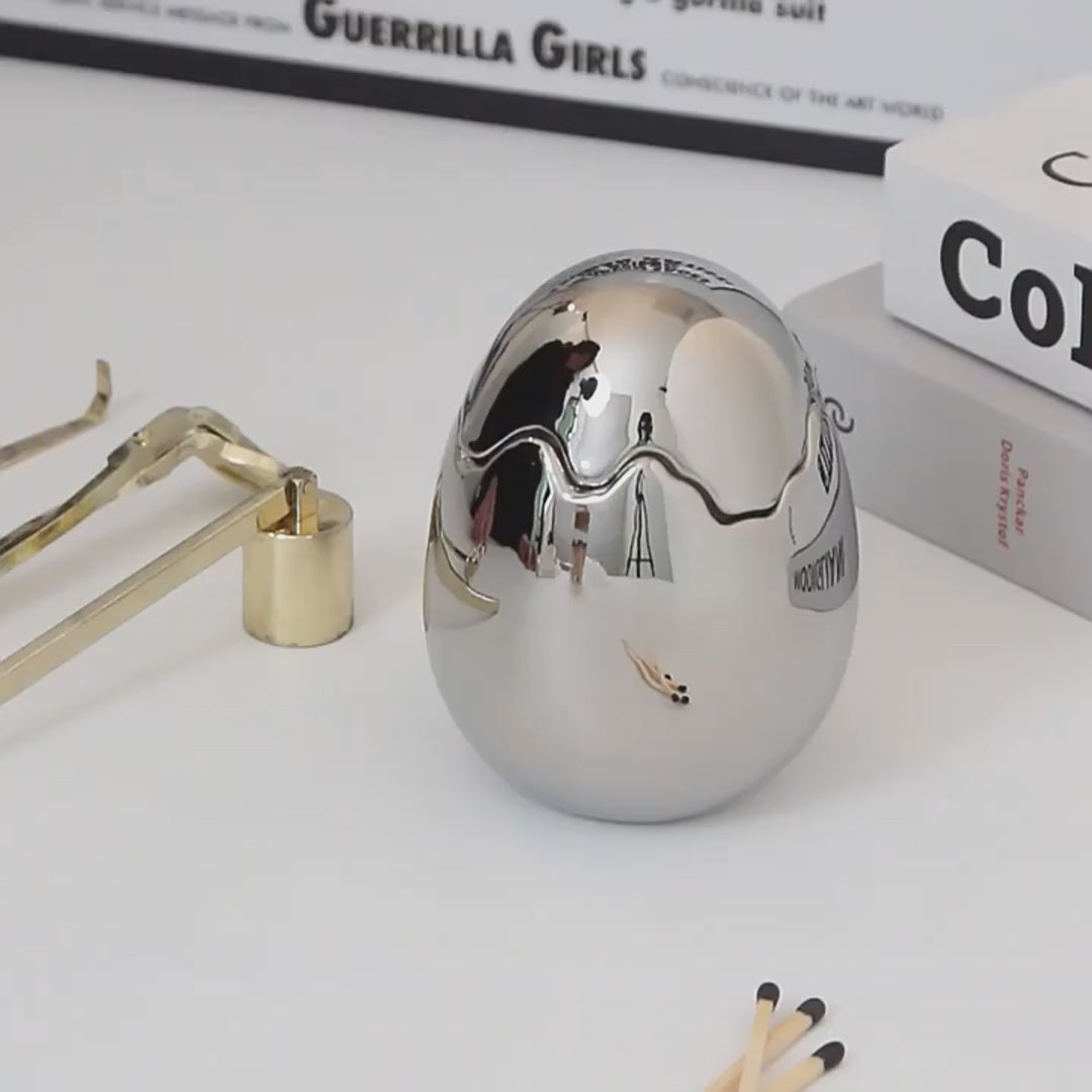 Luxury Eggshell -Style Ceramic Candle Jar ( Comes without a candle ) - Gold / Silver Home Decor